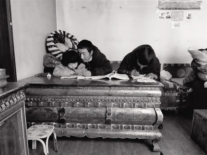 次仁羅布到縣里讀小學(xué)時(shí),父母賣掉了村里的房子,陪他一起去了縣城,為了節(jié)省一點(diǎn)開支,將次仁羅布的弟弟和外甥女留在叔叔家中。到了縣城以后,他們租了一間只能容下三個(gè)人的小房子,就這樣父母陪他度過了一年的學(xué)習(xí)生活。為了改善家庭的經(jīng)濟(jì)狀況,父母也開始到各個(gè)地方擺攤做起了小生意,到處奔波了六年,才在縣城里蓋了一個(gè)小木房。