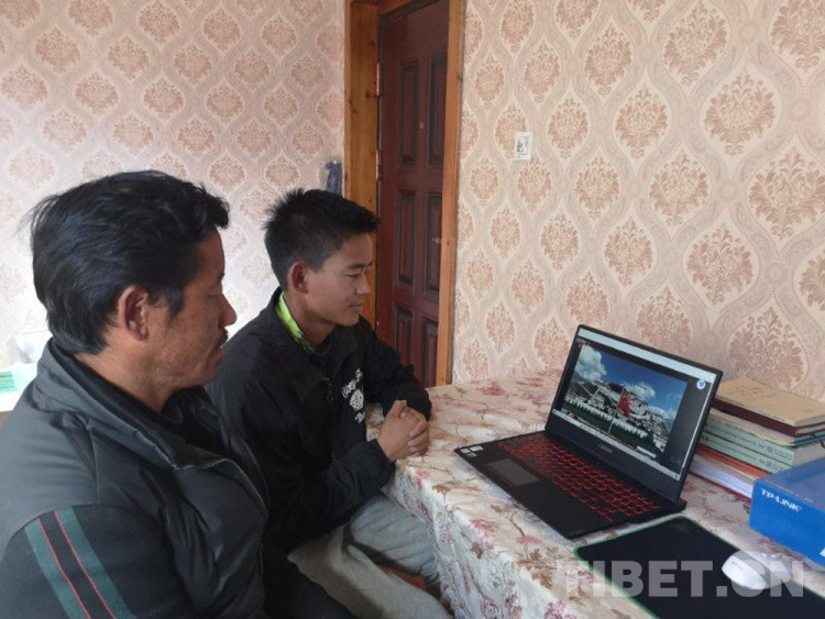 圖為學(xué)生和家長在家中通過網(wǎng)絡(luò)共同參與紀(jì)念活動 圖片由拉薩中學(xué)提供