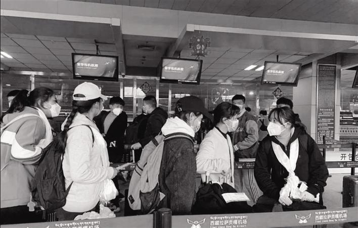 返程學(xué)生在貢嘎機(jī)場辦理登機(jī)手續(xù)。圖由民航西藏區(qū)局提供