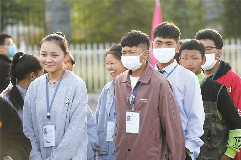 當(dāng)日上午8時,考生統(tǒng)一乘坐拉薩市公交公司高考愛心接送車來到拉薩中學(xué)考點。在疫情防控常態(tài)化背景下,考生手拿準(zhǔn)考證、身份證,戴著口罩,排隊測量體溫之后,有序進入考場。為應(yīng)對突發(fā)狀況,考點外設(shè)置了隔離區(qū),并有醫(yī)療人員駐守。參加高考的考生之間也互相加油打氣,考生拉巴頓珠說:“祝愿大家都能好好發(fā)揮,考上自己心儀的學(xué)校?!?/p>