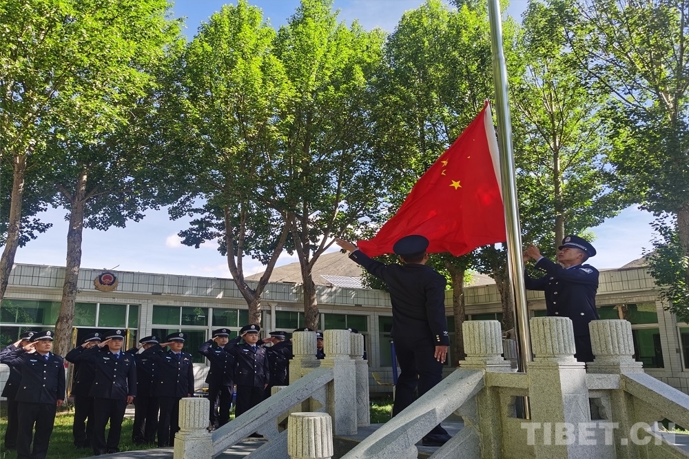 圖為雪布下邊境檢查站組織民警開(kāi)展升國(guó)旗儀式 攝影:次朗