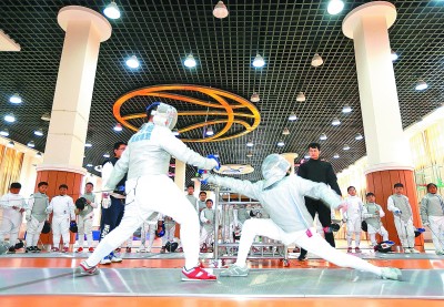 近年來,為提升學生身體素質,營造特色校園文化,位于山東省青島市即墨區(qū)的青島通濟實驗學校將擊劍項目引入校園,列為校本課程,聘請專業(yè)老師進行擊劍禮儀、基本步伐、實戰(zhàn)技能等內容的訓練,并按期舉行花劍、重劍、佩劍等項目的比賽,讓學生們在挑戰(zhàn)運動中增強體魄、健康成長。