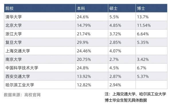 不過(guò),南京大學(xué)成為個(gè)例,博士生就業(yè)率為97.95%,低于本科生和碩士生就業(yè)率。另外,除中國(guó)科大、浙大博士生就業(yè)率略低于碩士生就業(yè)率外,其他高校博士生就業(yè)率均為最高。