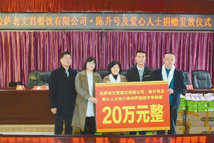 10月28日,拉薩老文君餐飲有限公司·陳升號及相關愛心人士向西藏日喀則薩迦縣中學捐贈405雙價值68445元的運動鞋,并達成20萬元捐款意向,用于薩迦中學教育發(fā)展。