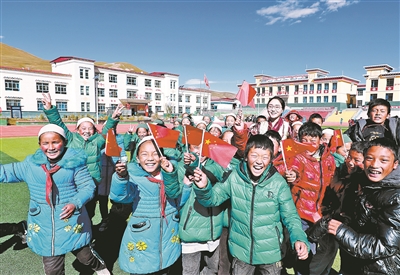 和學(xué)生們?cè)谝黄?,是桑丁卓瑪最開(kāi)心的時(shí)刻。她專門給學(xué)生帶來(lái)國(guó)旗、國(guó)旗貼,為他們講述國(guó)旗下民族團(tuán)結(jié)好故事。