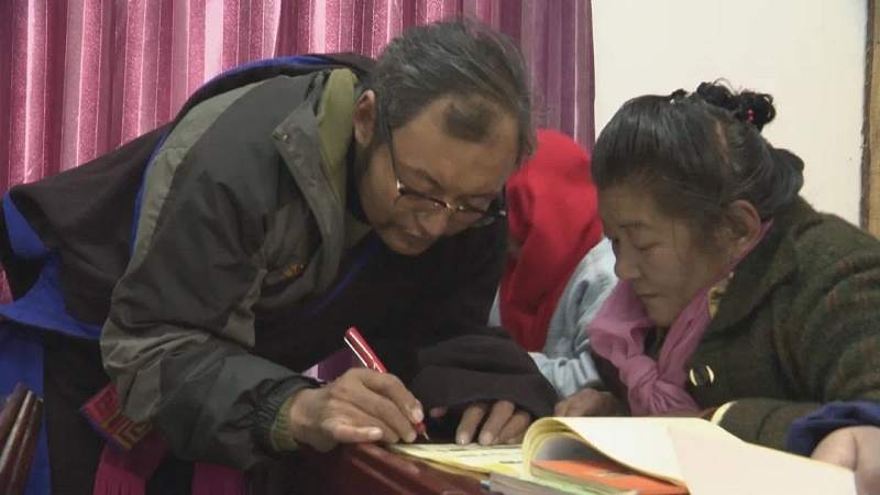 年末的安多早已步入寒冬,忙碌的時節(jié)已接近尾聲。隨著牧閑時節(jié)的到來,帕那鎮(zhèn)一村的“夜?!睙狒[非凡,不時傳來一陣陣讀書聲。每年這個時候,帕那鎮(zhèn)一村宣傳委員嘎達會按時組織牧民們一起補習(xí)他們曾經(jīng)落下的藏文、語文、數(shù)學(xué)基礎(chǔ)和政策知識、科學(xué)文化、法律法規(guī)等知識內(nèi)容。