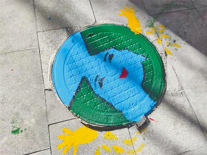 以環(huán)保、垃圾分類(lèi)為主題的各種彩繪圖案覆蓋上了井蓋,使得原本黑乎乎的井蓋一下變得活潑生動(dòng)起來(lái)。