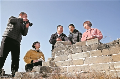 “讓每一塊城磚開口,讓每一處遺址說話?!惫疟笨阪?zhèn)中心小學校長徐國文(左三)帶領教師把教研活動搬到了長城上,探討如何打破課程設置“壁壘”,在考察、尋訪、探究、實踐中培養(yǎng)學生堅毅品格。樊世剛 攝