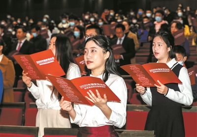 活動(dòng)現(xiàn)場(chǎng),北京主會(huì)場(chǎng)學(xué)生領(lǐng)唱《憲法伴我們成長(zhǎng)》,從優(yōu)美的歌聲中體會(huì)憲法力量。北京外國(guó)語(yǔ)大學(xué)黨委書記王定華宣讀了第五屆全國(guó)學(xué)生“學(xué)憲法 講憲法”全國(guó)總決賽獲獎(jiǎng)名單。