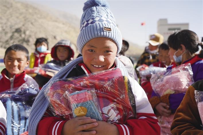 2020年12月31日,阿里巴巴天天正能量聯(lián)合西藏商報開展的2020“針心針意”大型暖冬公益行動,在愛心人士們的大力支持下,圓滿畫上了句號。工作人員趕在新年前,將愛心物資分別送往山南市浪卡子縣倫布雪鄉(xiāng)蘇格村蘇格小學、山南市貢嘎縣森布日搬遷地、拉薩市當雄縣5個村幼兒園,為孩子們送上愛心物資。孩子們戴上愛心人士們親手編織的圍巾、帽子和手套,綻放出燦爛的笑容,溫暖了這個冬天。
