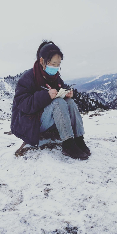 2020年3月,西藏昌都市波格村,就讀于江蘇食品藥品職業(yè)技術學院的藏族女孩斯郎巴珍,疫情期間在家上網(wǎng)課。由于家中網(wǎng)絡信號不好,她爬上雪山頂一處信號較好的位置聽課。劉麗/攝