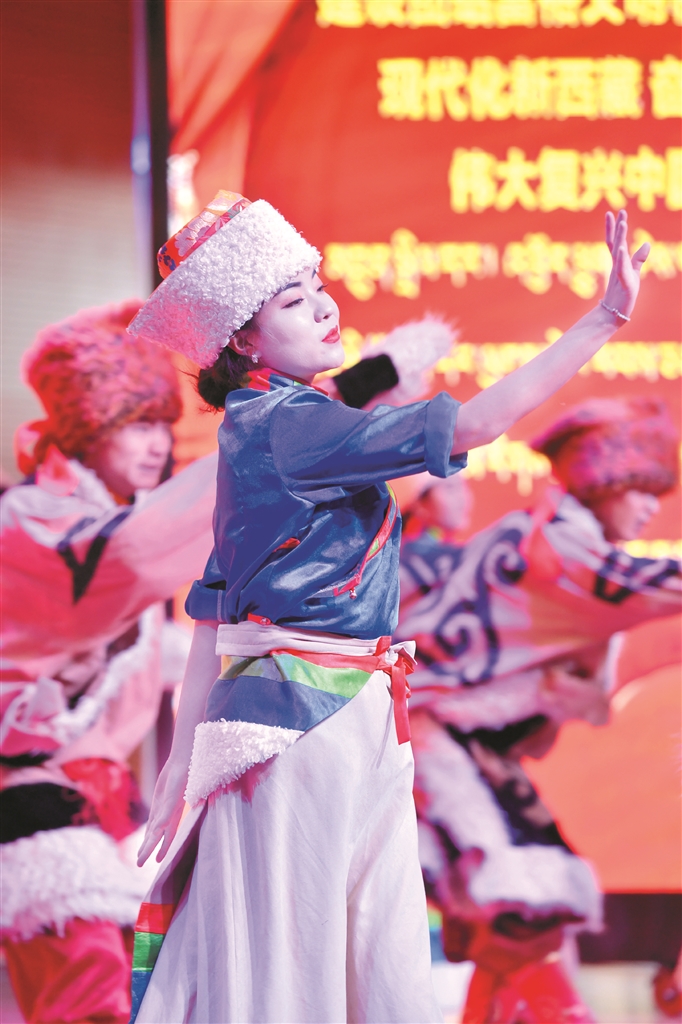 活動(dòng)現(xiàn)場,演員們?yōu)榇蠹規(guī)砹司实母栉璞硌?。圖片由拉薩融媒視覺組攝