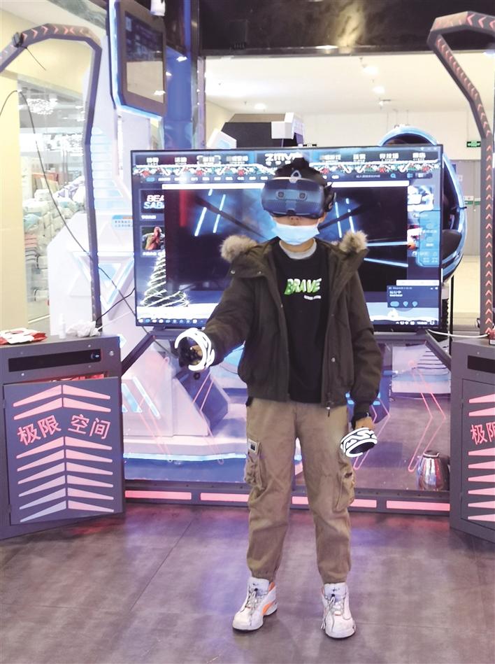 圖為寒假期間,一個(gè)小男孩正在體驗(yàn)VR游戲的樂趣。 鄭璐 袁海霞 攝