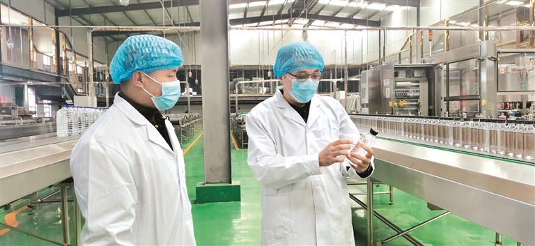 圖為顏峰在當(dāng)雄納木措圣水廠查看生產(chǎn)情況。 拉薩融媒記者 王 雪攝