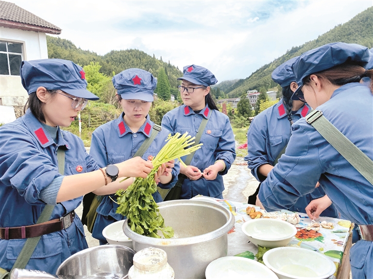 自制紅軍餐是拉薩市參訓學員進行革命傳統(tǒng)教育的內(nèi)容之一。紅軍餐中的每一道菜都有特殊的意義,學員們利用準備好的食材、廚具、柴火等,完成了生火、洗菜、切菜、炒菜等紅軍餐制作全流程。一道道簡樸卻不失美味的紅軍菜肴,讓大家深深感受到了井岡山革命時期生活條件的艱苦。