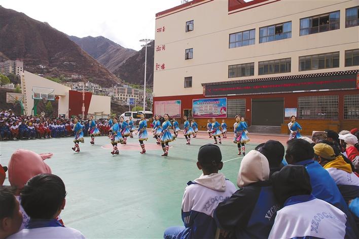 圖為昌都市初級中學師生在觀看文藝演出。萬慧 攝