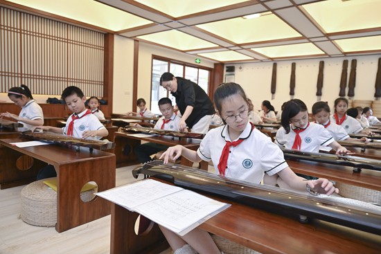 5月11日,在福州市烏山小學(xué),學(xué)生在參加課后古琴興趣班。新華社記者 宋為偉/攝