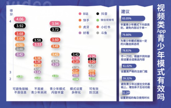 面對目前各平臺青少年模式良莠不齊的現(xiàn)狀,參與測評的大學(xué)生也有自己的見解。在剛剛畢業(yè)1年的95后教師姜煒眼里,部分軟件青少年模式下推薦的內(nèi)容不能滿足青少年的興趣?!昂每匆曨l給我推薦的都是動畫片,我教的高中生不太感興趣;小紅書的青少年模式入口有點難找,找到以后推薦給我的都是考研相關(guān)內(nèi)容,對未成年人來說可讀性不高;斗魚、虎牙這類直播平臺,本身大部分都是游戲類內(nèi)容,青少年模式下幾乎大多數(shù)內(nèi)容都會被屏蔽,我相信任何使用這兩款軟件的青少年都不愿意使用青少年模式?!辈贿^,他給抖音和B站打了高分。“這兩款軟件的推送內(nèi)容除了有興趣類的,還有一些名師課程,符合青少年的興趣?!?/p>