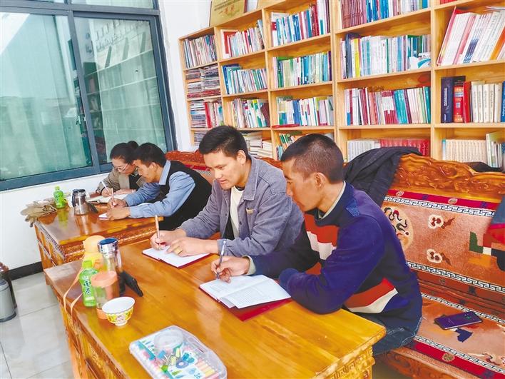 圖為薩迦縣木拉鄉(xiāng)基層工作者通過手機參與線上“微講堂”培訓(xùn)班學(xué)習(xí)。記者 汪純 攝