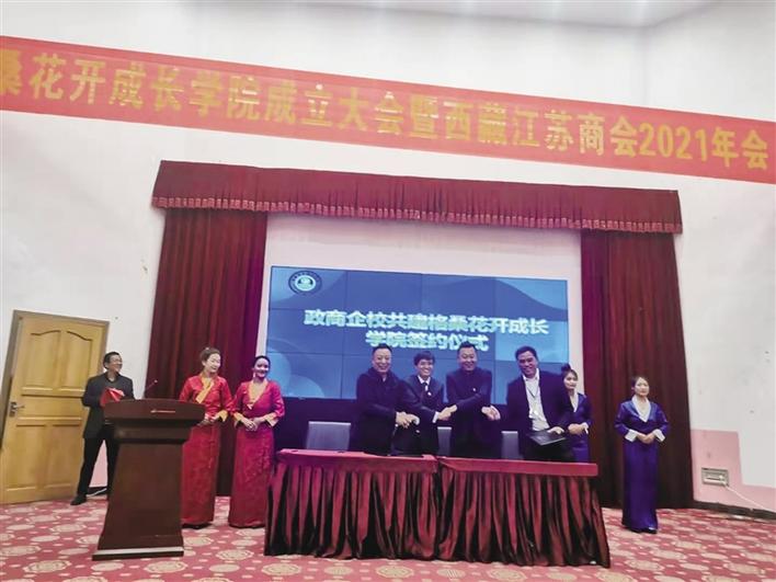 8月27日,南京市對(duì)口支援墨竹工卡縣工作組在西藏職業(yè)技術(shù)學(xué)院舉辦以“政商企校共建 聚力就業(yè)援藏”為主題的格桑花開成長學(xué)院成立大會(huì)暨西藏江蘇商會(huì)2021年年會(huì)。