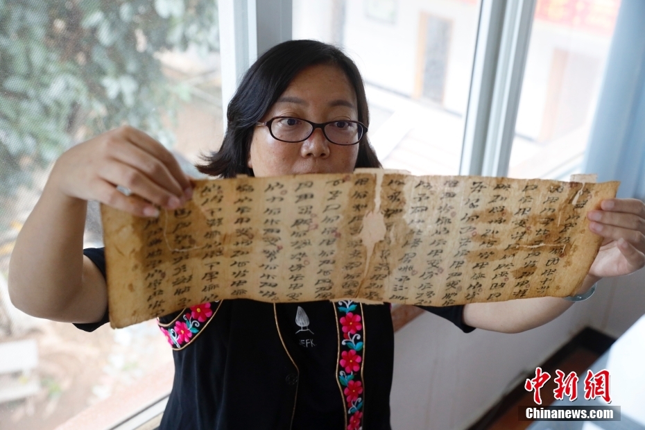 9月8日,云南楚雄,修復(fù)師檢查剛修復(fù)出來的古籍。楚雄彝族文化研究院位于云南省楚雄彝族自治州楚雄市,是云南省從事彝族文化專門研究的社會(huì)科學(xué)研究機(jī)構(gòu)。該院始終注重對(duì)彝文古籍的收集、翻譯、整理等搶救性工作,現(xiàn)已收集了近3000部彝文古籍。 中新社記者 李嘉嫻 攝