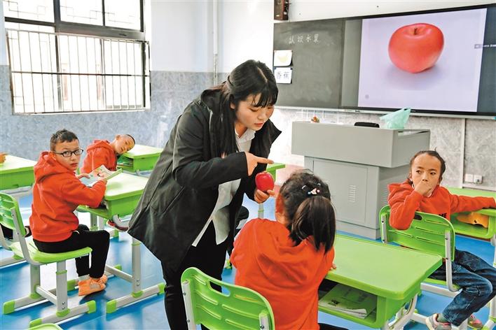 拉薩市特殊學(xué)校的老師通過(guò)圖片、實(shí)物讓孩子們認(rèn)知水果?!∮浾摺√票蟆〉ぴ鋈号唷z