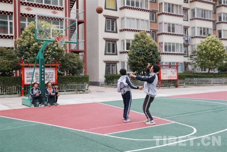 圖為甘孜州兒童福利院內(nèi),孩子們在打籃球 攝影:楊月云