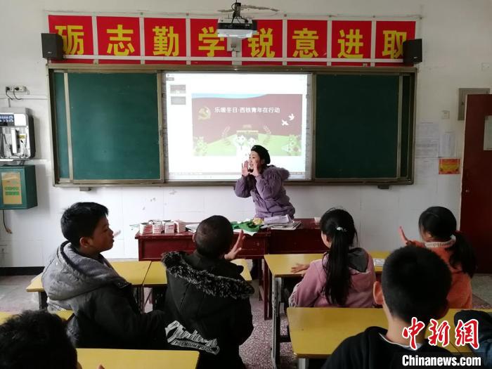 圖為西安局集團(tuán)公司職工孟露深入楊莊小學(xué),為當(dāng)?shù)貙W(xué)生開(kāi)展支教工作?!钤砾i 攝