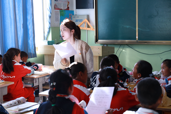 充分了解當(dāng)?shù)亟虒W(xué)情況和學(xué)生需求后,關(guān)愛隊師生為藏族孩子們定制了英語、音樂、素質(zhì)拓展等一系列特色課程。