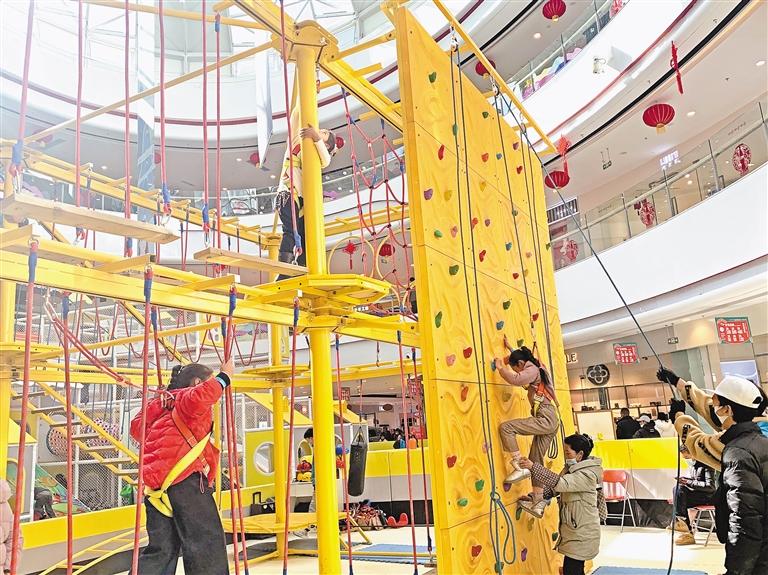 春節(jié)期間,孩子們按照自己的興趣,有的在家看電視、有的閱讀書籍、有的約幾個好友一起玩?!羞@樣一群孩子是通過參加各種運動來鍛煉自己的體能,豐富假期生活。在商場的攀巖館、蹦床館等趣味運動場所就可以看到他們的身影。