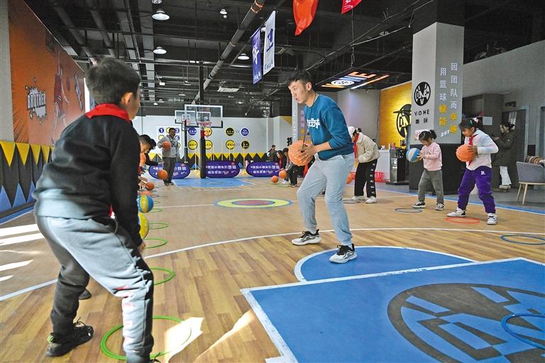 孩子們?cè)诮叹毜闹笇?dǎo)下進(jìn)行運(yùn)球練習(xí)。記者 洛桑 攝