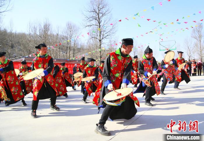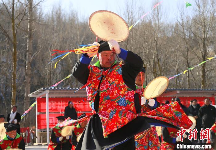 “我們會在每年春天播種前后,舉行廟會。會上由法師打著單面扇形羊皮鼓跳舞,祈求禳災(zāi)避禍,平安吉祥。由于敲鼓時發(fā)出了‘梆、梆’聲響就稱它為梆梆會?!卑鸢鹞璺沁z傳承人李占森介紹,梆梆會是土族民俗祭祀文化保留最為完整的活動。