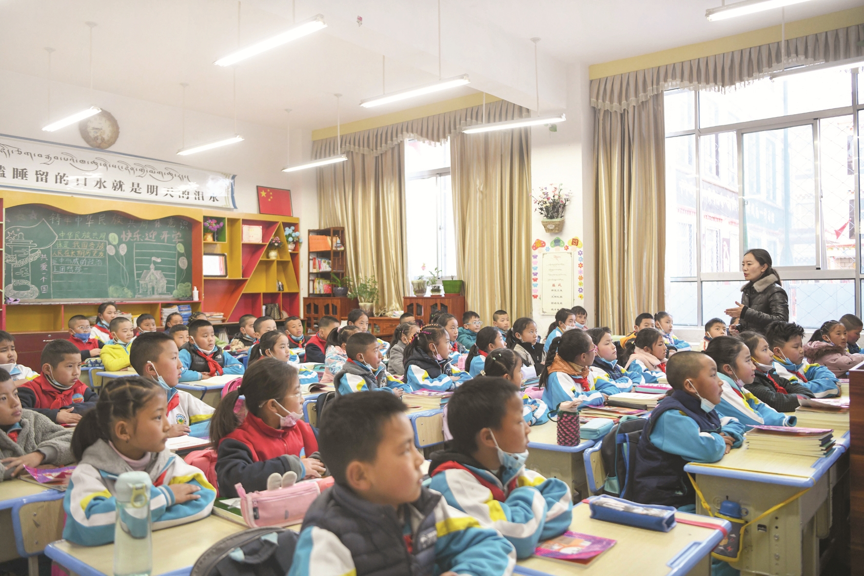 拉薩市城關(guān)區(qū)第二小學(xué)的同學(xué)們聆聽開學(xué)第一課