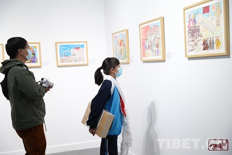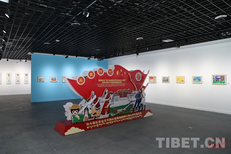 圖為畫美時(shí)代——“紀(jì)念西藏百萬農(nóng)奴解放63周年”拉薩市青少年優(yōu)秀繪畫作品展現(xiàn)場(chǎng)