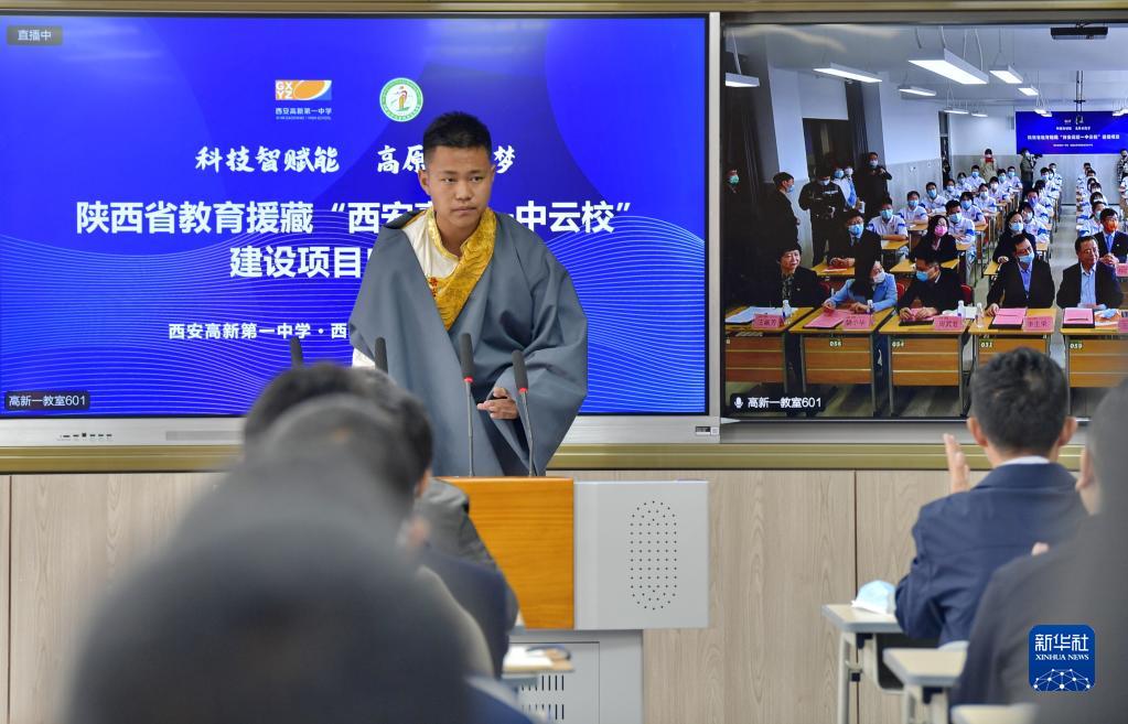 當日,陜西省教育援藏“云?!苯ㄔO項目正式啟動。陜西省西安高新第一中學和西藏拉薩阿里地區(qū)高級中學結成“對子”,借助5G網絡開展教學教研互動,助力提升教育水平。