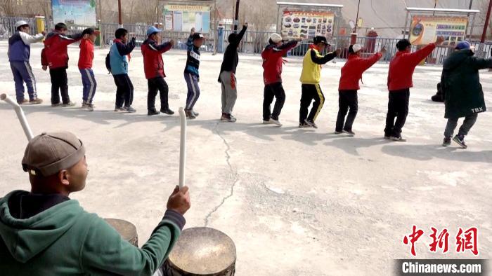 圖為多油完小學生在課余時間練習傳統(tǒng)非遺舞蹈“嘎爾”舞?!∝暽@?攝
