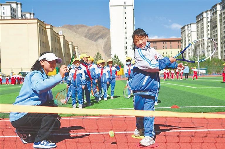 西藏:網(wǎng)球進(jìn)校園 大手教小手
