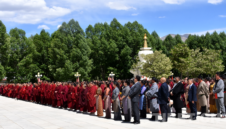 西藏自治區(qū)黨委常委、統(tǒng)戰(zhàn)部部長(zhǎng),區(qū)政協(xié)黨組副書(shū)記、副主席嘎瑪澤登出席儀式并勉勵(lì)經(jīng)師和學(xué)員們弘揚(yáng)愛(ài)國(guó)愛(ài)教、護(hù)國(guó)利民的優(yōu)良傳統(tǒng),切實(shí)增強(qiáng)參加“三個(gè)意識(shí)”教育的責(zé)任感、使命感,爭(zhēng)當(dāng)“學(xué)”的典型和“做”的楷模。