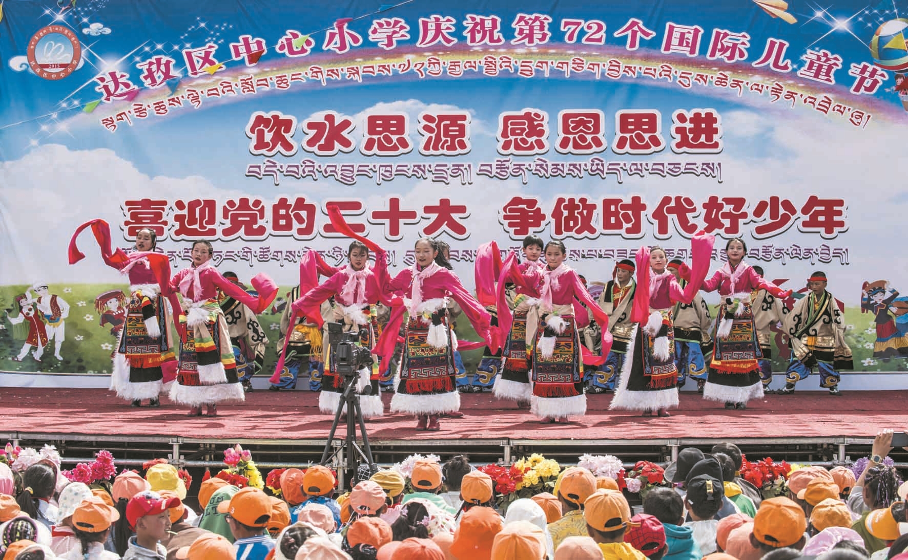 6月1日,達(dá)孜區(qū)中心小學(xué)舉辦“飲水思源 感恩思進(jìn)——喜迎黨的二十大 爭做新時代好少年”文藝匯演。圖為小朋友們在表演節(jié)目。拉薩融媒記者 平措旺堆攝
