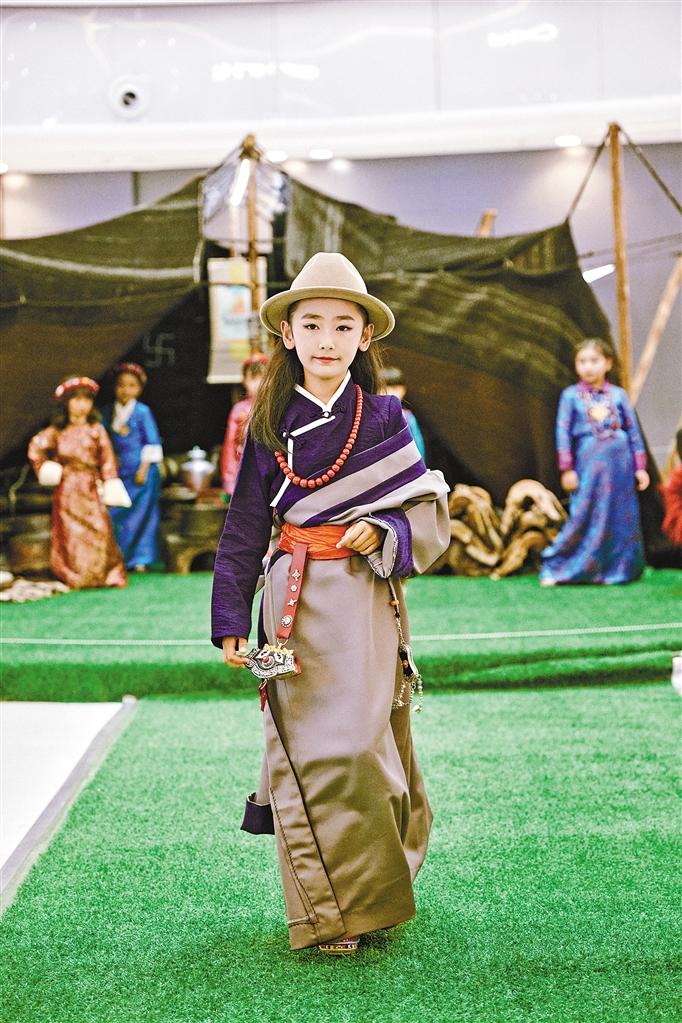 塔耶梅朵美育培養(yǎng)中心的學員在第三屆國際少兒時裝周上展示風采。