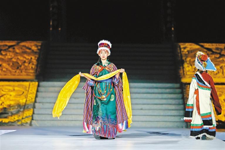塔耶梅朵美育培養(yǎng)中心的學員展示藏族特色傳統(tǒng)服飾。