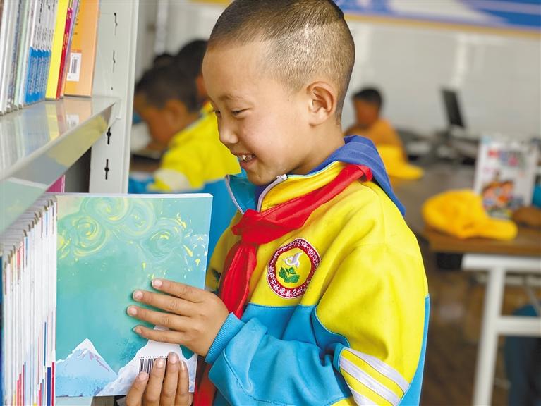 在蘇州援建的蘇萱圖書室內(nèi),林周縣蘇州小學(xué)學(xué)生正在挑選自己喜歡的讀物。