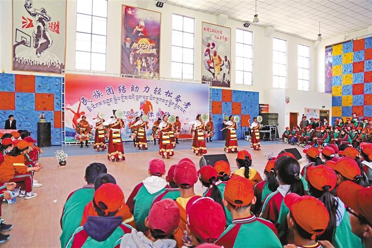 墨竹工卡縣在縣中學籃球館舉辦中考減壓活動