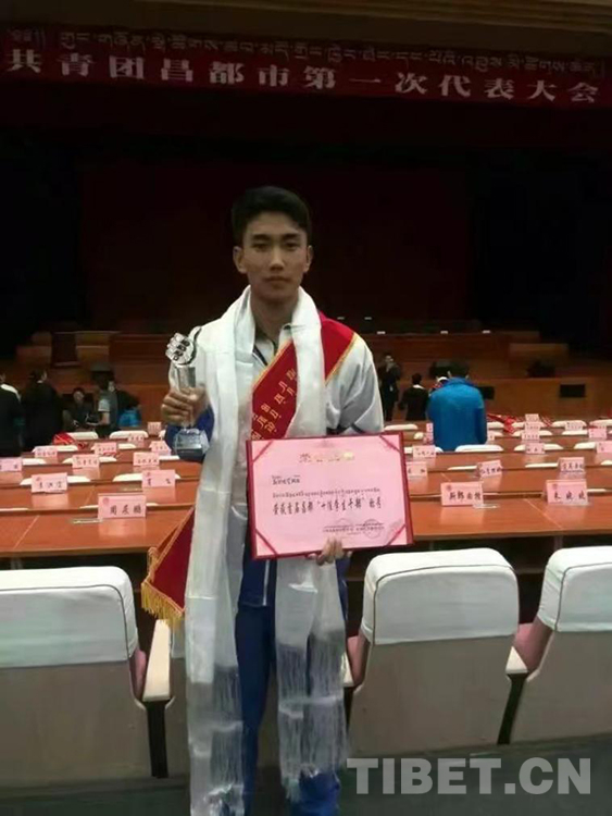 圖為斯郎格登榮獲首屆昌都“十佳學(xué)生干部”