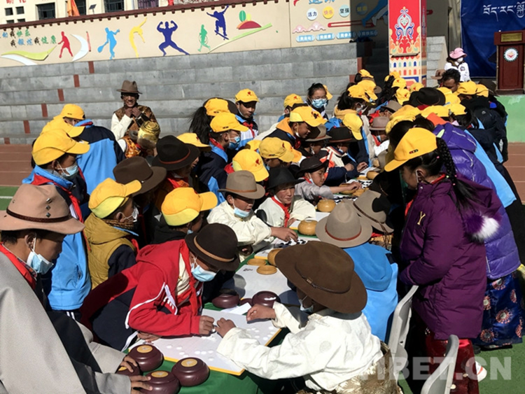 圖為2021年西藏自治區(qū)“體育項(xiàng)目進(jìn)校園”活動(dòng)暨拉薩市堆龍德慶區(qū)古榮鎮(zhèn)中心小學(xué)藏棋比賽活動(dòng)現(xiàn)場 攝影:次旦拉姆