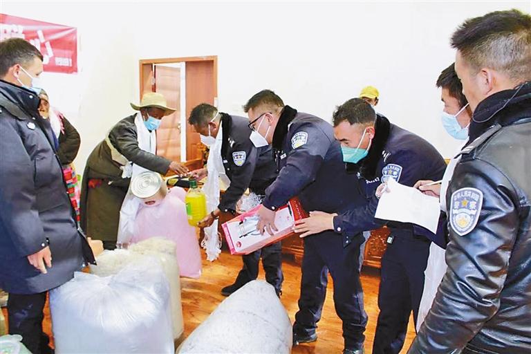 仲巴縣公安局民警為群眾送溫暖。