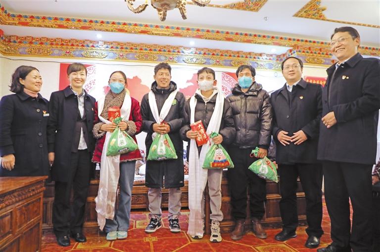 圖為藏歷新年來臨之際,該支行三個支部為恩惠苑社區(qū)貧困生送去幫扶助學(xué)資金2.6萬元。記者 格桑倫珠 攝