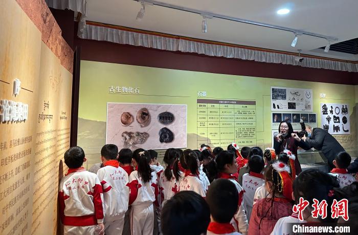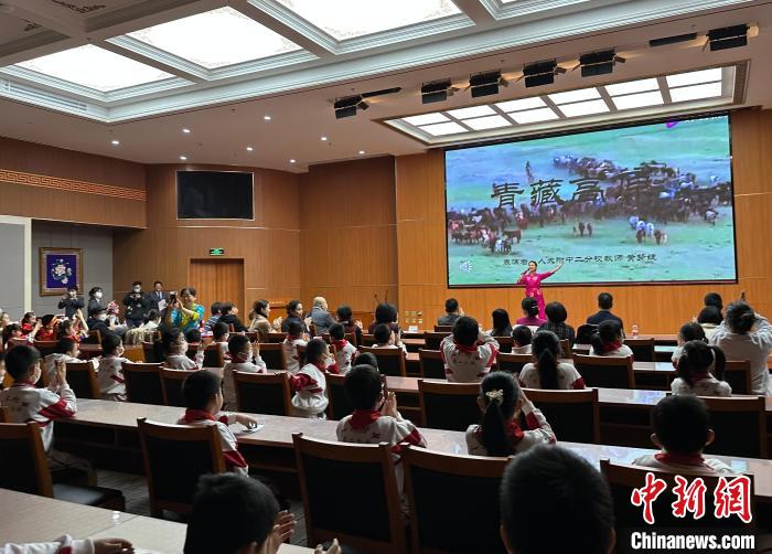 圖為活動(dòng)當(dāng)天西藏文化博物館的志愿者們帶領(lǐng)小朋友參觀館內(nèi)展覽?!±铌涎?攝