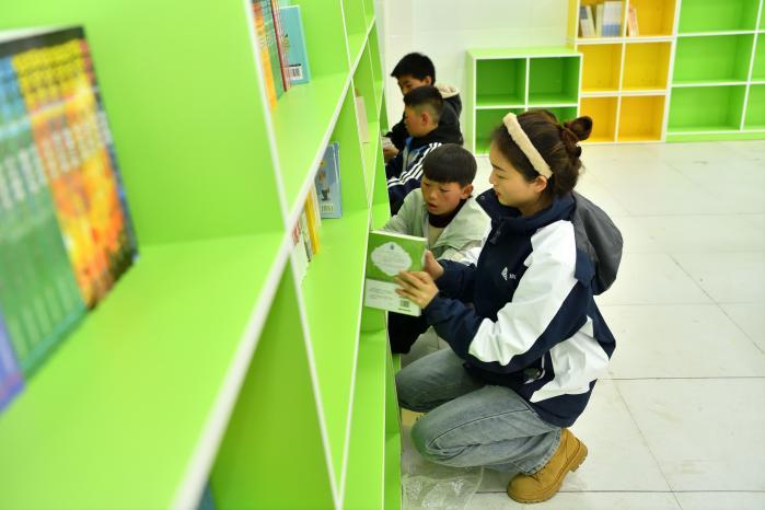 藥山鎮(zhèn)中心小學(xué)的同學(xué)們在新閱讀室閱讀新書。