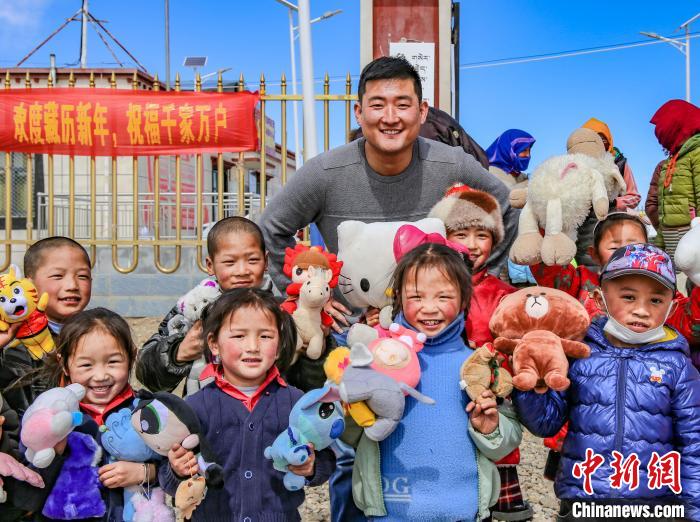 圖為孩子們拿到毛絨玩具后合影留念。 丁增 攝